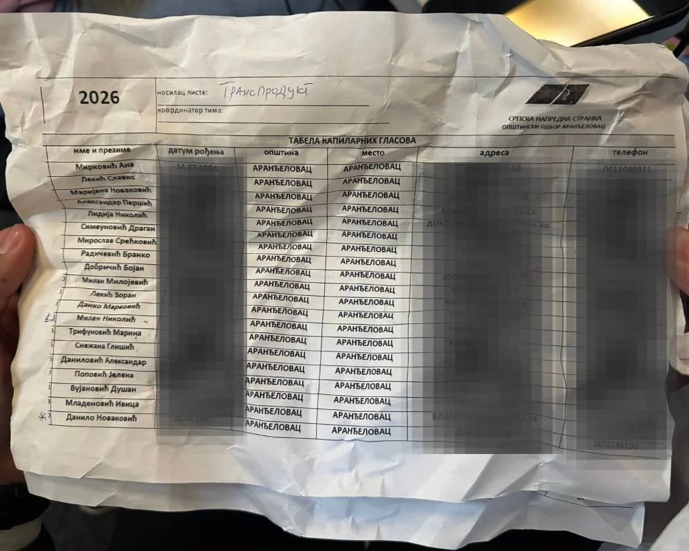 Konfiskovani su paralelni birački spiskovi u Aranđelovcu, u blizini autobuske stanice!