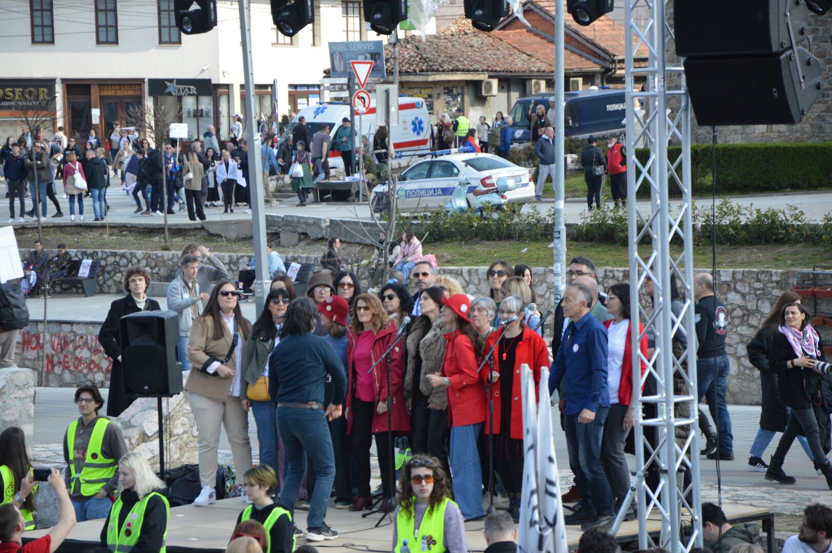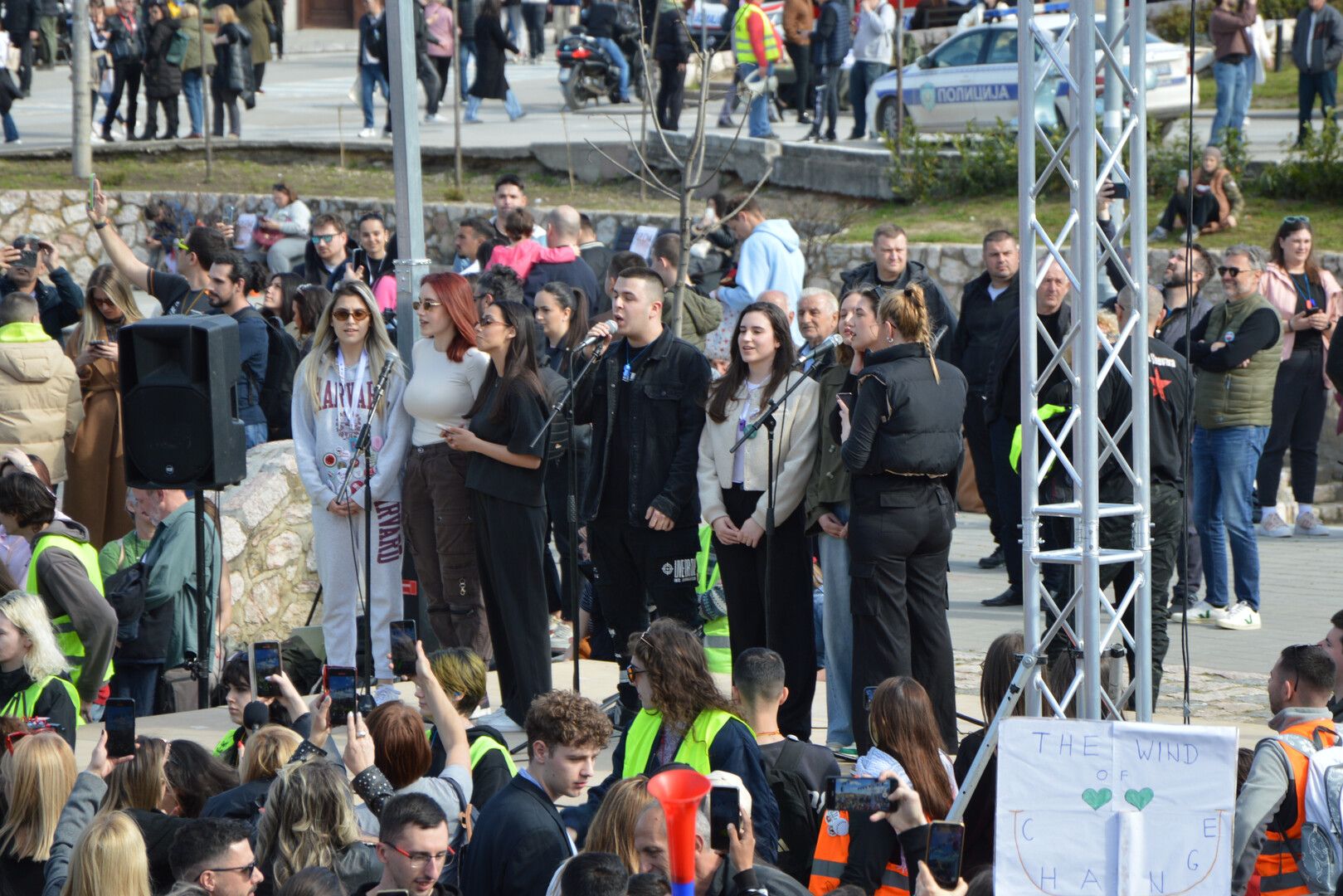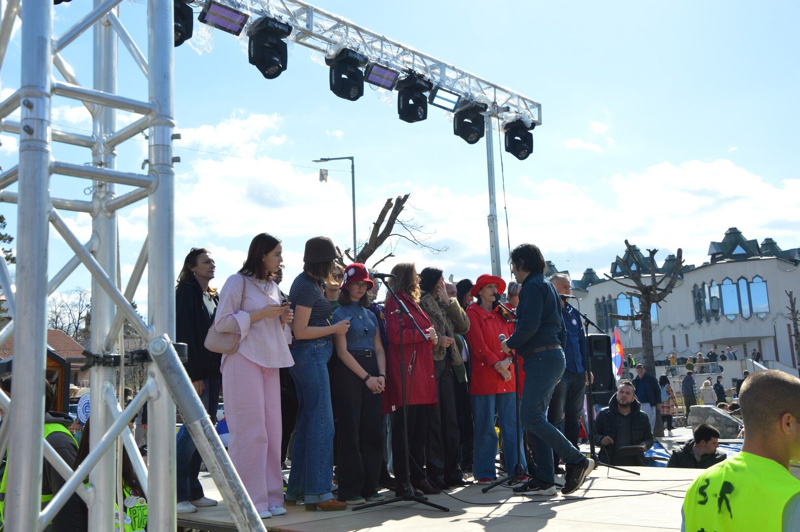 Хор симболично отвара уметнички блок данашњег протеста, показујући да борба за правду није само у паролама, већ и у култури, емоцији и солидарности.