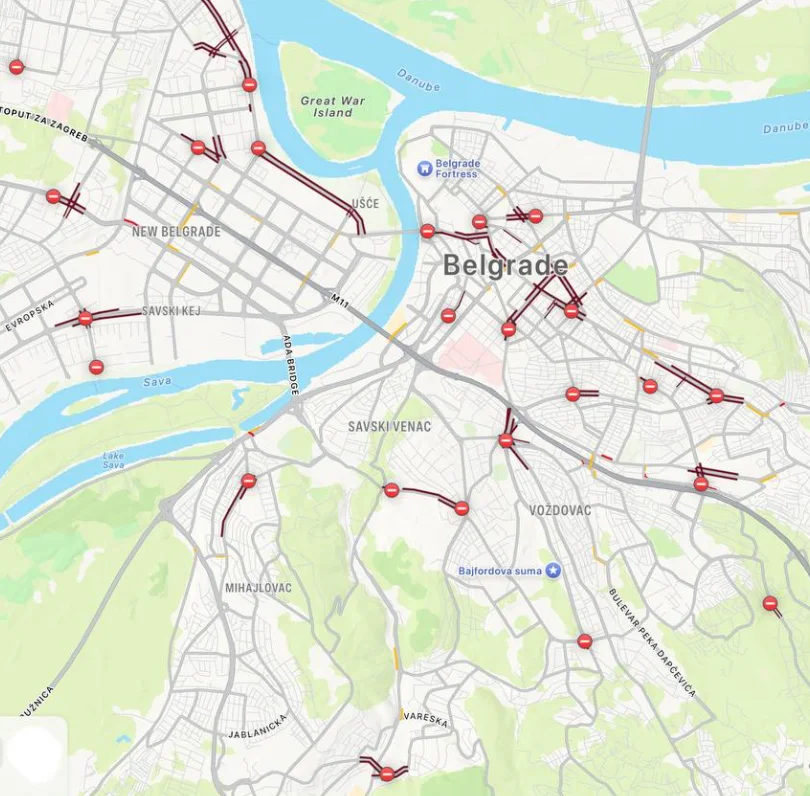 Најновије информације о блокираним локацијама се могу наћи на временској линији вести.
