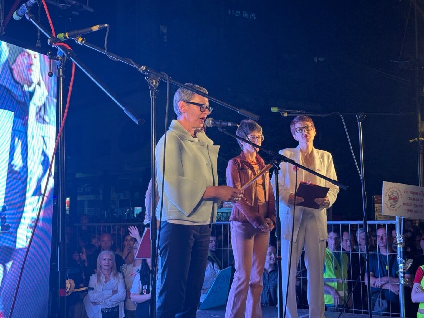 […] Али ово више није само протест студената. Тачно је, ви сте укресали искру у обамрло биће народа, узели сте на себе улогу оног преосталог дела свести и савести, а онда је почело буђење. Буђење које нас суочава с болом, али тај бол је неопходан, као што бива после сваке анестезије. Започели сте процес лечења гангренозног друштвеног ткива. То лечење није једноставно и до оздрављења се не може преко ноћи. Трајаће.